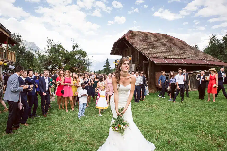 Face à lui s’étend la chaîne du Mont Blanc et l’on comprend pourquoi Cordon est appelé « Le balcon du Mont Blanc ». Derrière, se dresse la chaîne des Aravis… On ne peut pas rêver situation plus propice à l’évasion, à la contemplation, au bien-être et au ressourcement. C’est pour cela que j’aime beaucoup cette région. C’est donc avec plaisir que j’ai retrouvé Jeromine et Paul pour leurs préparatifs. Ils ont ensuite célébrer leur mariage à la mairie et à l’église de Corbon avec tous leurs proches.